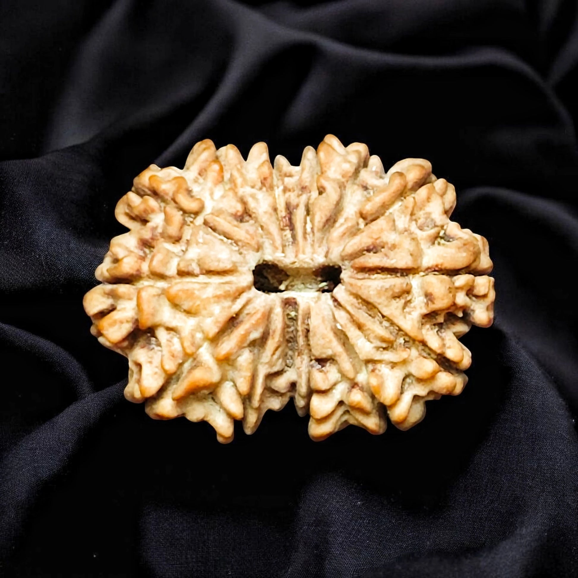 The 14 Mukhi Rudraksha is one of the most powerful and divine beads, known as "Dev Mani" – the Gem of the Gods. It is believed to be the form of Lord Shiva and is also blessed by Lord Hanuman. This sacred bead activates the Ajna Chakra (Third Eye) and enhances intuition, insight, and decision-making abilities.