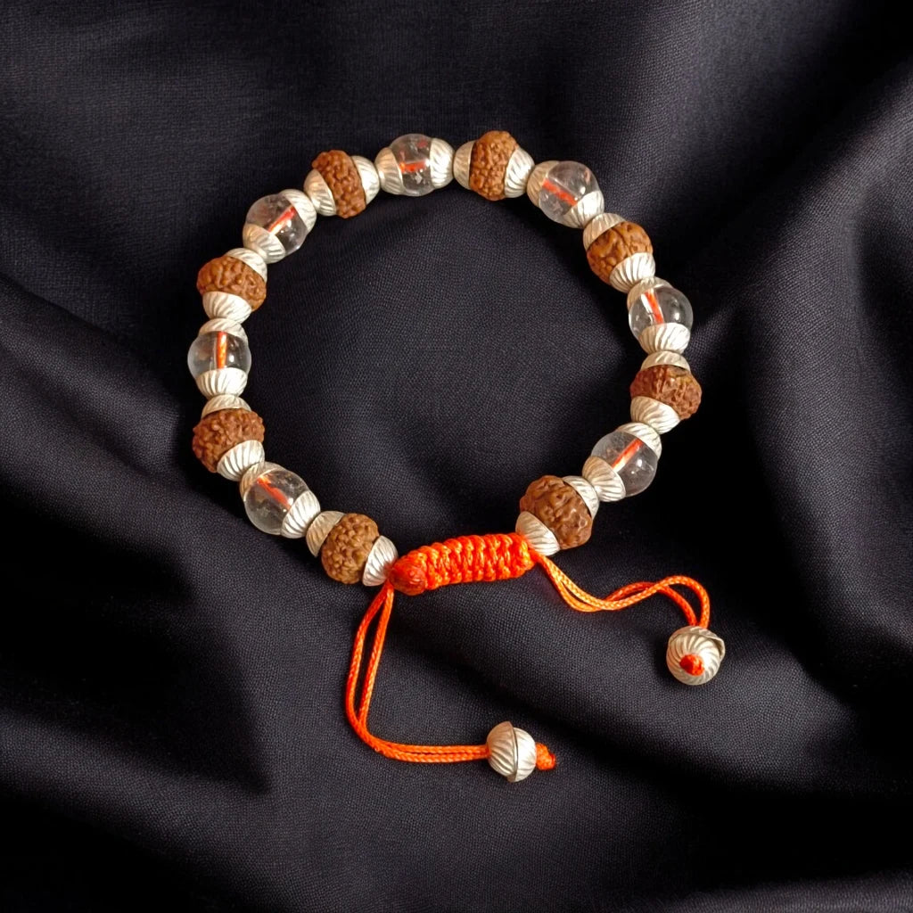 Sphatik Rudraksha Combination Bracelet With Pure Silver Capping